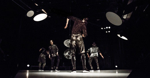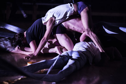 Sometimes it was so quiet, so interior, I found myself zoning out, but there were also captivating moments. At the start of the work, the dancers let a row of bulbous shapes hanging from ropes loose to swing back and forth. These props suddenly became the dancers and the dancers the props surrounding them. There was a whiff of the perverse and dangerous, maybe even of violence, to the shapes. They also took on a kind of shiny symmetry and slickness, something like the feel of large black plastic garbage bags: beautiful but abandoned, indestructible but headed to the trash heap. We watched the row of objects swing back and forth, past their shadows and through them again, first in line with each other, then slowly falling out of sync into an ever-shifting array of patterns and tempos. It felt kaleidoscopic, fractal, pendulous, loose, and wild, yet the motions assumed a kind of organic organization too. Quietly, without fuss, they swung between order and chaos, as did the dance itself in Cosmic Body.