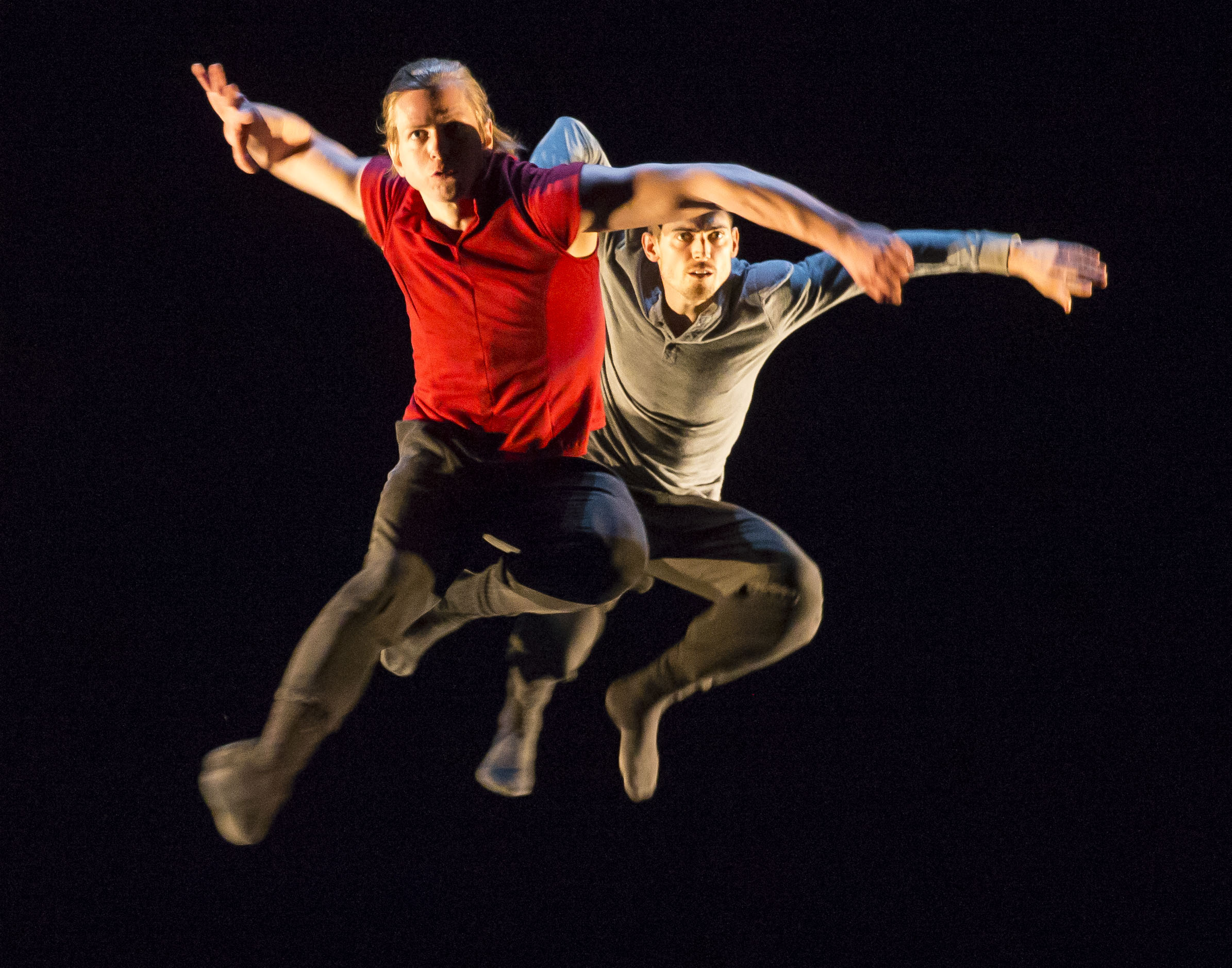 Penny Saunders’s Berceuse stayed in the simpler realm of the male-female duet, but she returned repeatedly to a little motif of an awkward hop, made by both dancers at different moments and in varying postures and iterations. This leap was like a hiccup at a stately, formal dinner, a burp at the banquet, a gaffe that in contrast to the ease of the rest of the dancing, made its effortlessness and grace a bit more human. The hop brought the ethereal back to earth, made a ground from which the hints of pure fantasy and feeling could arise. These dancers were able at times to leave their bodies for abstraction and write a kind of dialogue with muscle and bone against the blankness of the stage because, in part, the choreography signaled the grasp gravity ultimately had on them.