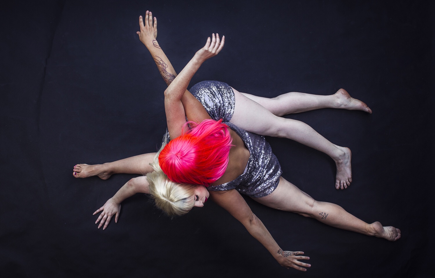 Khecari’s duet featured soloists centrifugally spinning out from certain loosely shared turning motifs into Meyer and Antonick’s own independent investigations. By contrast, Bianca Cabrera and Rebecca Morris of Blind Tiger Society, from San Francisco, moved in tandem in Dressage.