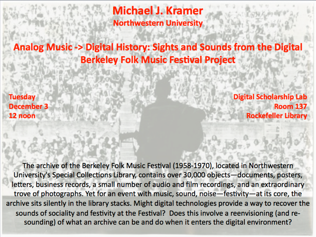 - 16th Annual History Graduate Student Symposium Keynote: Analog Music -> Digital History – Sights and Sounds from the Digital Berkeley Folk Music Festival Project
