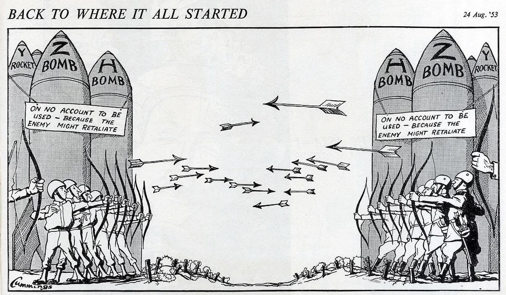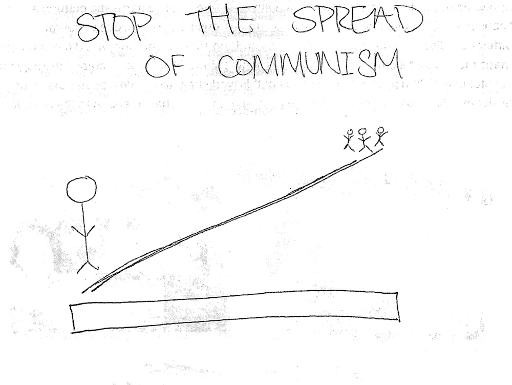 Of course, ironies abounded. As foreign policy, containment led to an expansive interventionism by the US. It meant that the US had to oppose communism wherever and whenever it may spread. The Cold War got hot quite often through endless proxy wars, coup plots, and forms of both military attack and soft power. It created upside-down ideas: in containment logic, “mutually assured destruction” and a nuclear arms race would guarantee that no nuclear apocalypse would occur.