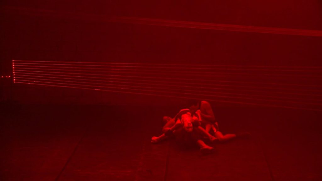 Which is to say that at first the movement looked like a portrayal of people hurting each other under pressure, suffering from the unjust imbalances placed upon them, the almost unbearable heights to which they had to climb to survive, only one maybe able to make it over. It was a kind of pyramid scheme of bodies, always threatening to tumble down and fall apart, but then, as they kept climbing over, on, atop, one another, something else emerged too: the competition started to contain elements of cooperation, adjustment, recalibration.