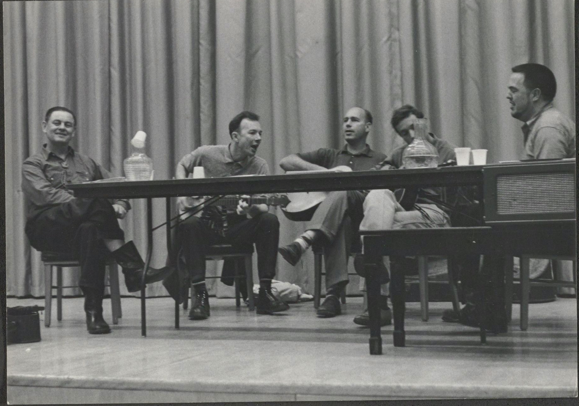 Jesse Fuller, Merritt Herring, Jimmy Driftwood, Sam Hinton, Shirley Collins, Alan Lomax, Jimmy Driftwood, Pete Seeger, and Ramblin’ Jack Elliott talk folk music at the 1959 Berkeley Folk Music Festival.